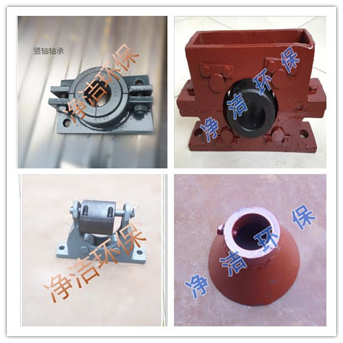 新型尘中轴承一种由托轮轴,托轮,密封套构成的托轮部件和支座,垫片,锁定套,开口销,销轴,挡圈,护罩等所组成的电除尘器.尘中轴承支座底板呈长方形,两端有固定螺栓孔,中间有排泄粉尘用的矩形孔,两侧墙板对称,墙板上有斜槽,锁定套孔,及销轴安装孔等,通过挡圈,锁定套,销轴,垫片,开口销能快速安装托轮部件和护罩.托轮呈圆柱状,与托轮轴间隙配合,设有密封套相吻合的沟槽;托轮轴中间有一段狭径,两端设有挡圈槽和开口销孔.电除尘瓷套筒简称瓷套,用于电晕极悬挂框架吊杆穿过场壳体处的密封和绝缘保护.根据电除尘瓷套筒的外形可分为直型瓷套,锥形瓷套和异形瓷套.